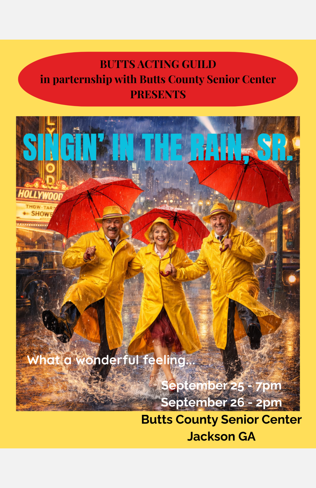 Filled with iconic numbers like “Good Morning,” “Make ’Em Laugh,” and the title song “Singin’ in the Rain,” the show celebrates friendship, perseverance, and the magic of Hollywood’s golden age.